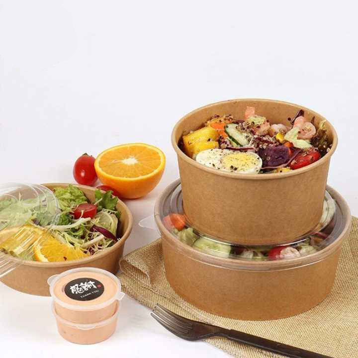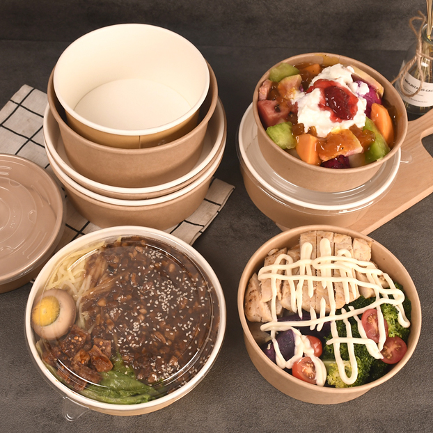 Our eco-friendly paper salad bowls are sturdy, lightweight, and come in various sizes. Made from food-grade, grease-resistant, waterproof materials, they are ideal for cold, fried, and dry foods.